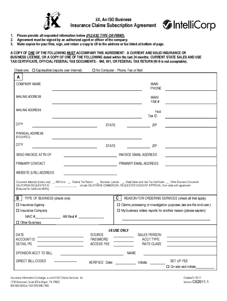 Six, An ISO BusinessInsurance Claims Subscription Agreement