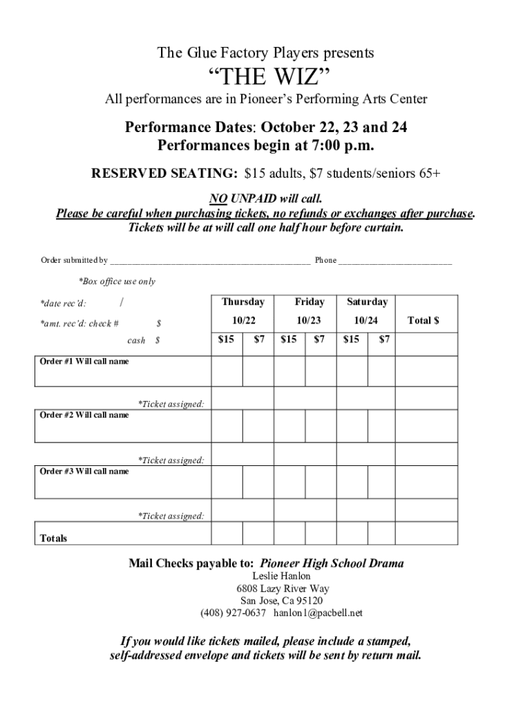 Get the free THE WIZ Ticket Order form.doc