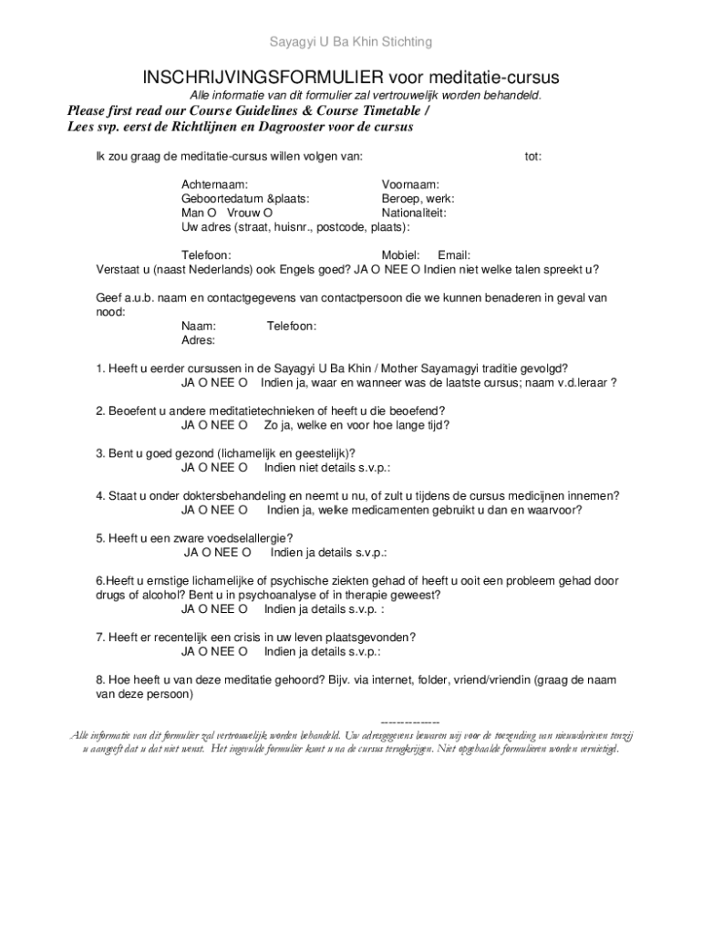 Salary U Ba Thin StichtingINSCHRIJVINGSFORMULIER poor meditatiecursus All informative van is formulaic zeal vertrouwelijk wooden rehandled. Please first read our Course Guidelines & Course Timetable