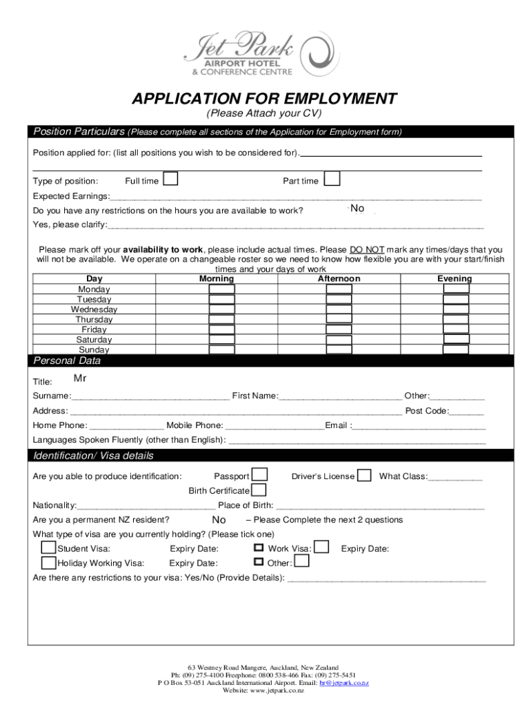 APPLICATION FOR EMPLOYMENT (Please Attach your CV) Position Particulars (Please complete all sections of the Application for Employment form) Position applied for: (list all positions you wish to