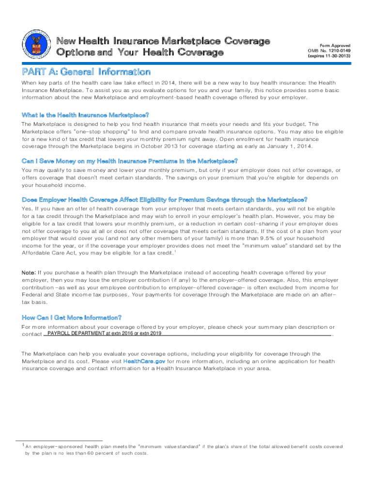 Get the free New Health Insurance Form ApprovedMarketplace Coverage OMB No ...