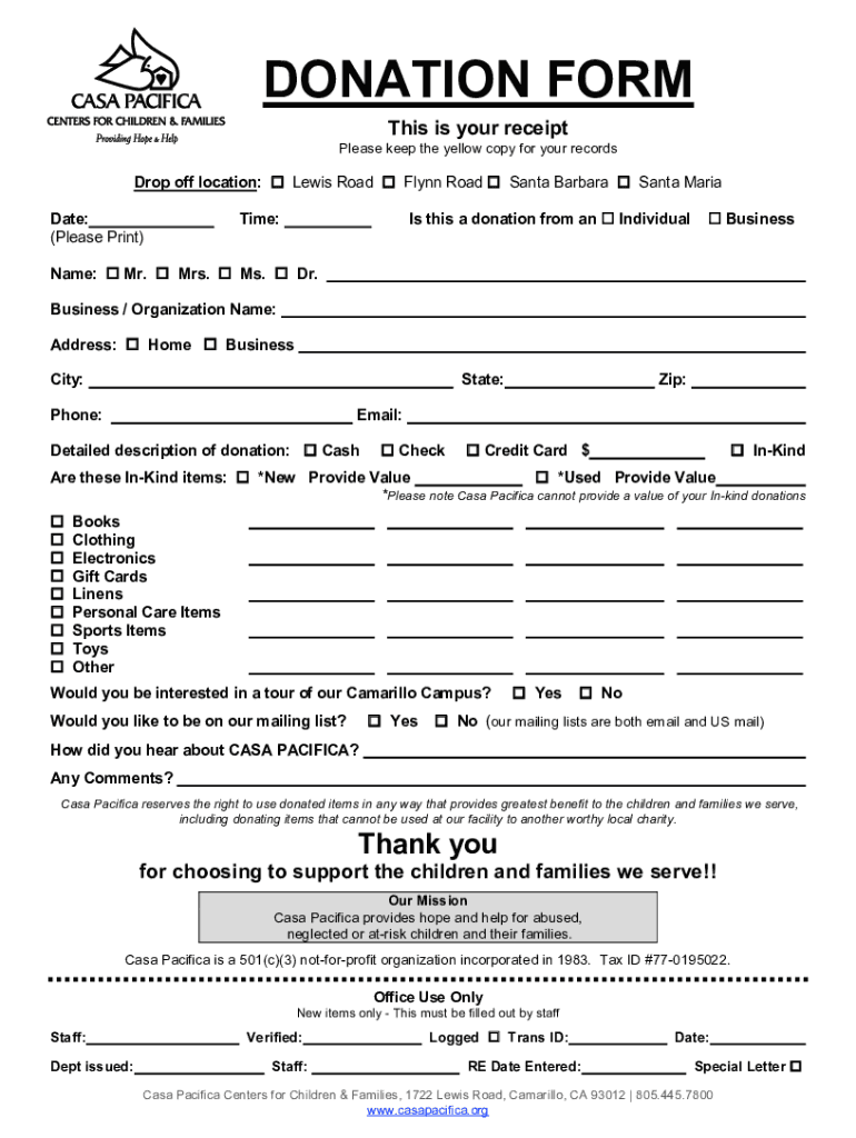 For children and their families. DONATION FORM This is your receiptPlease keep the yellow copy for your records1722 S. Lewis Rd. off location: Lewis Road Flynn Road Santa Barbara Santa Maria Camarillo,
