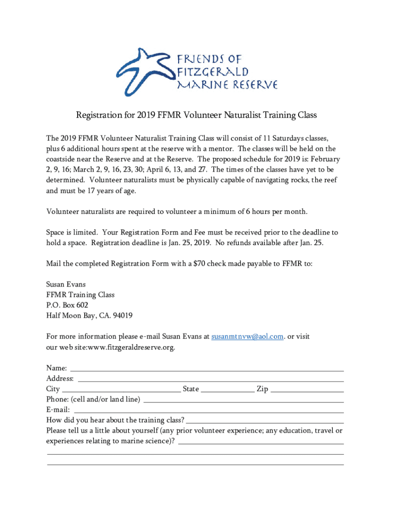 Registration for 2019 FFM Volunteer Naturalist Training Class