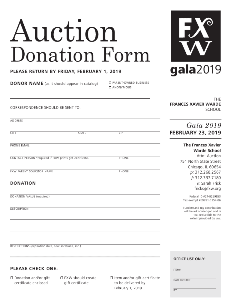 Download the 2020 auction donation form from the official website or obtain a physical copy from the auction organizers.
