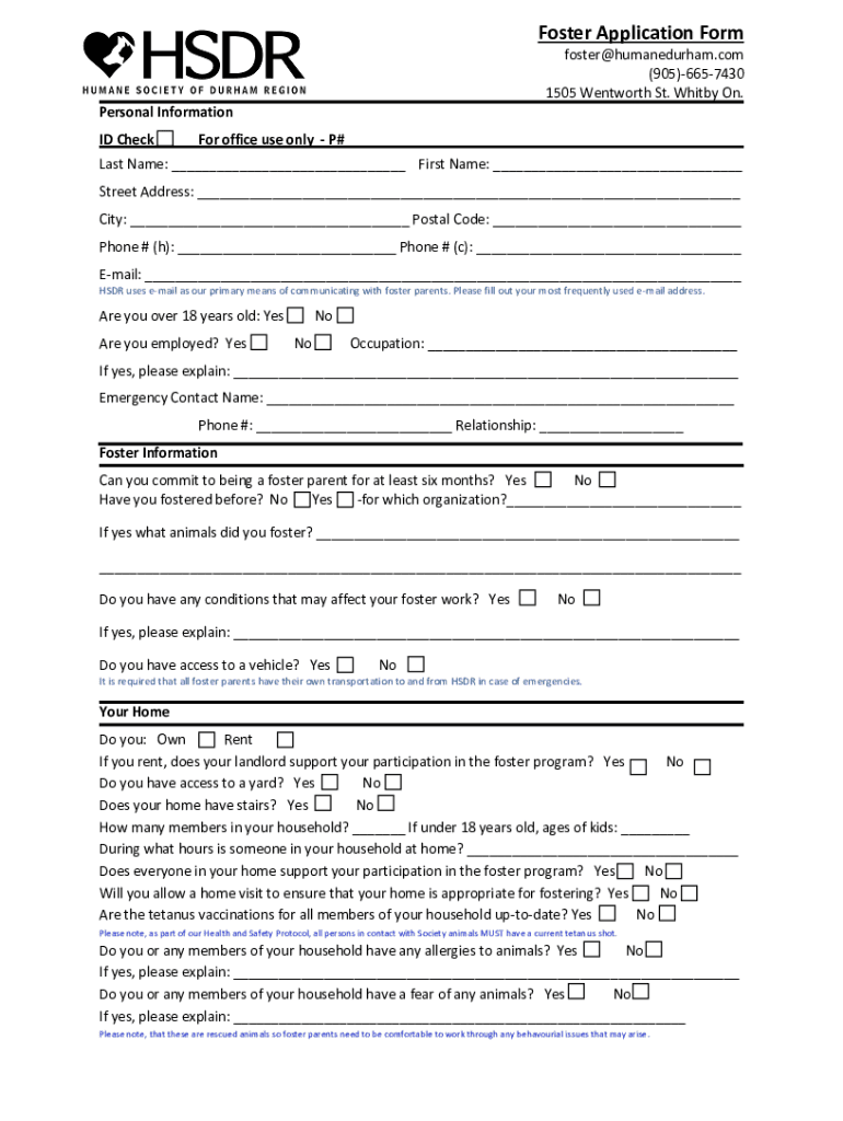 Get the free Foster Volunteer Application Form - The Humane Society of ...