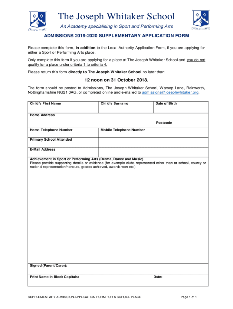 ADMISSIONS 20192020 SUPPLEMENTARY APPLICATION FORM
