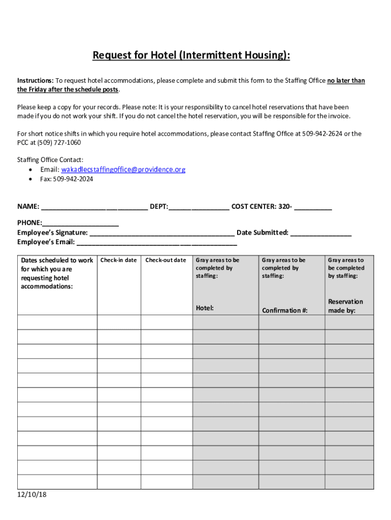 Instructions: To request hotel accommodations, please complete and submit this form to the Staffing Office no later than