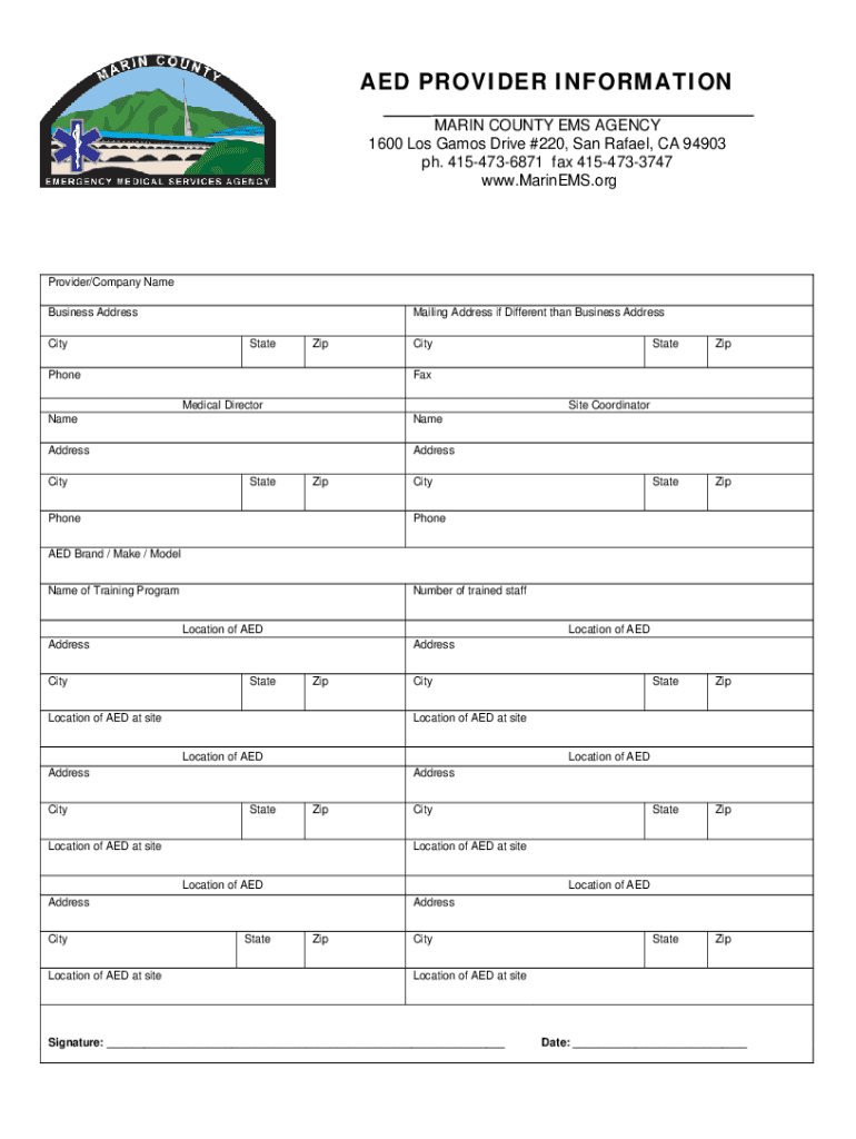 Get the free Emergency Medical Services - Fire Department - County of Marin - ems marinhhs