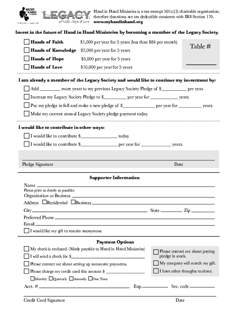Hand in Hand Ministries is a tax-exempt 501(c)(3) charitable organization;