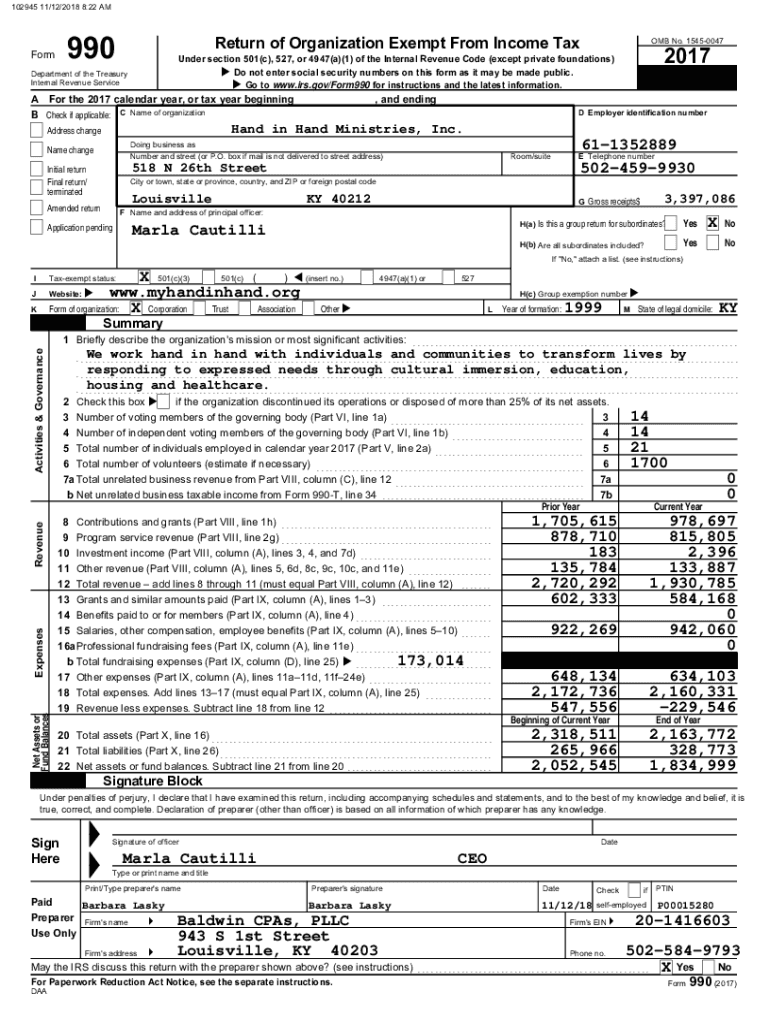 102945 11/12/2018 8:22 AM990FormReturn of Organization Exempt From Income Tax OMB No. 154500472017Under section 501(c), 527, or 4947(a)(1) of the Internal Revenue Code (except private foundations)