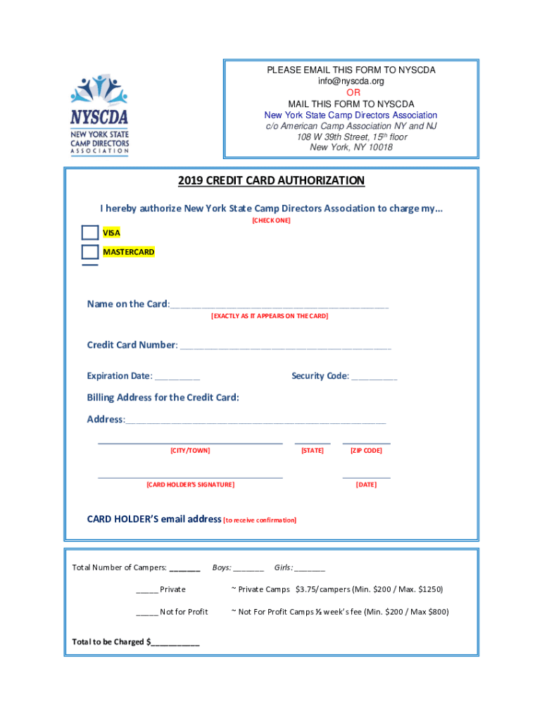 PLEASE EMAIL THIS FORM TO NACDA info NACDA.org OR MAIL THIS FORM TO NACDA New York State Camp Directors Association c/o American Camp Association NY and NJ 108 W 39th Street, 15th floor New York,