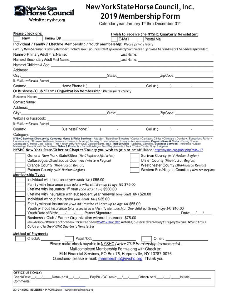 2019 Membership FormWebsite: NYC.calendar year January 1st through December 31stPlease check one: