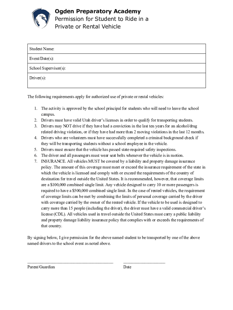 Get the free Ogden Preparatory Academy Private or Rental Vehicle Use ...