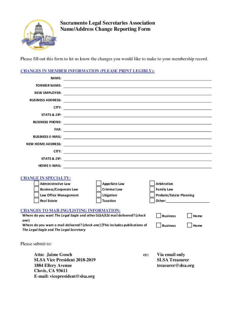 Get the free slsa Change of Address Form - Sacramento Legal Secretaries ...