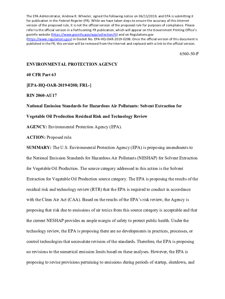 Get the free Proposed NESHAP: Solvent Extraction for Vegetable Oil Production ...