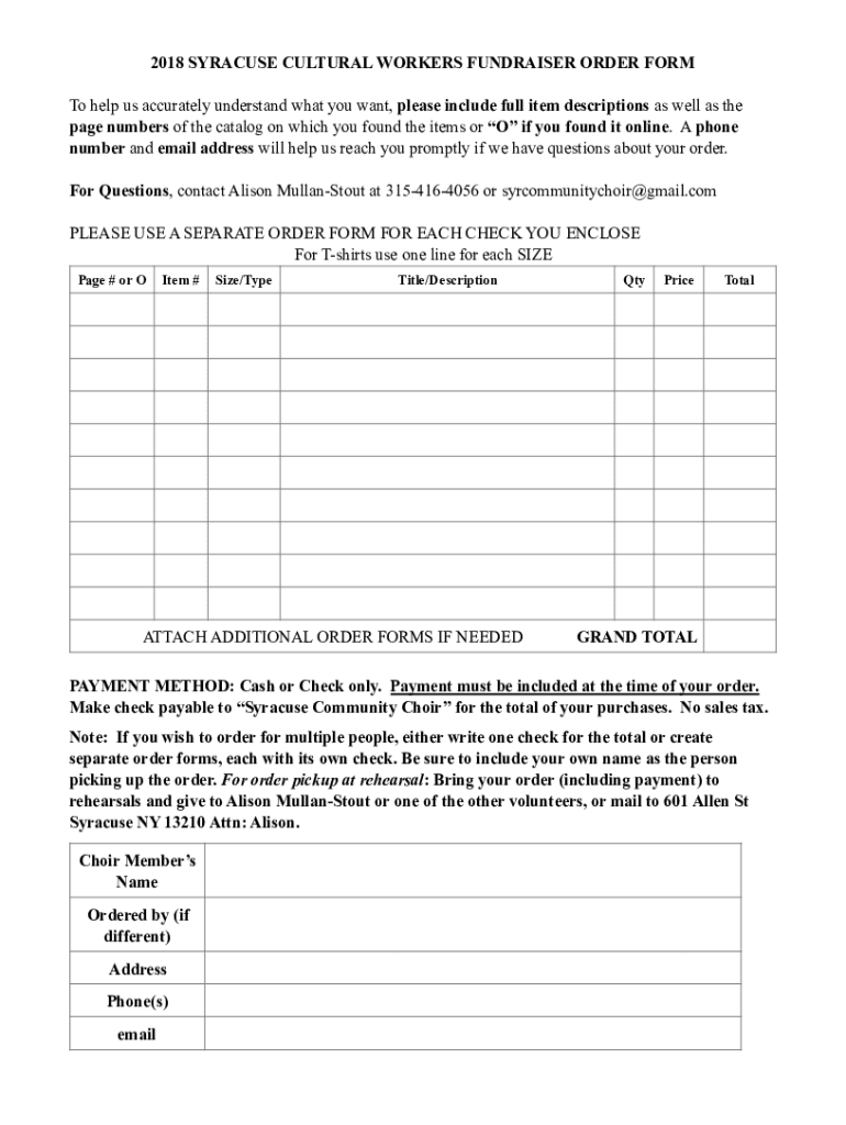 2018 SYRACUSE CULTURAL WORKERS FUNDRAISER ORDER FORM