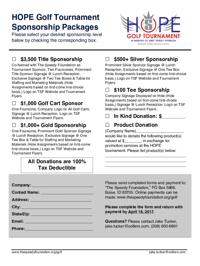 Get the free Edit - HOPE Golf Tournament Sponsorship Packages copy