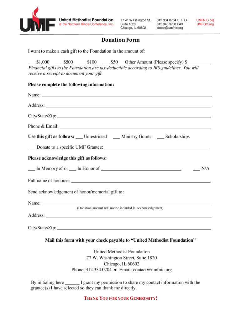 United Methodist Foundation of the Northern Illinois Conference, Inc.77 W. Washington St. Suite 1820 Chicago, IL 60602312.334.0704 OFFICE 312.346.9730 FAX Cook manic.organic.org Gift. Ordination Form