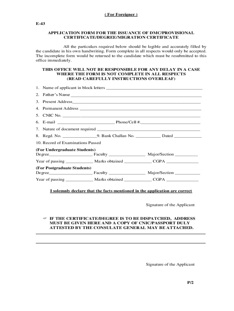 Get the free ( Within Pakistan ) E-43 APPLICATION FORM FOR THE ISSUANCE OF ... - uaf edu