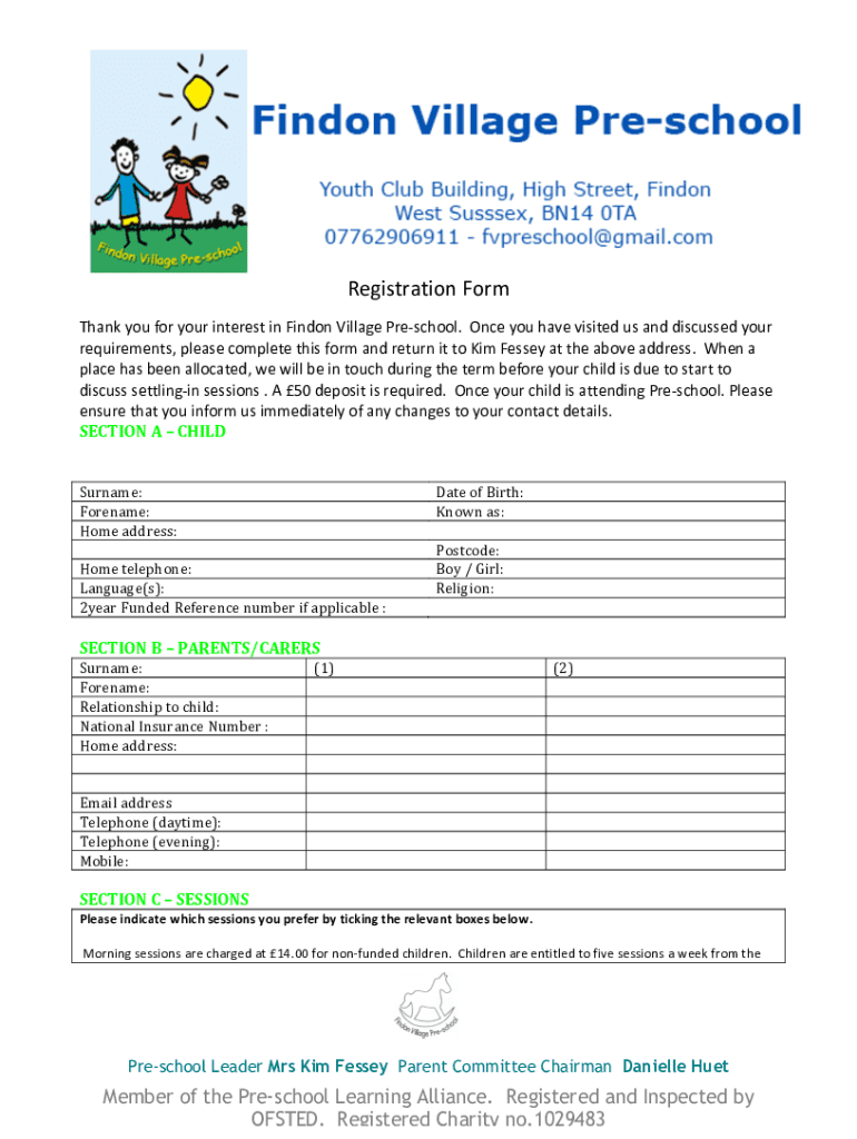 RegistrationFormThankyouforyourinterestinFindonVillagePreschool. Onceyouhavevisitedusanddiscussedyour