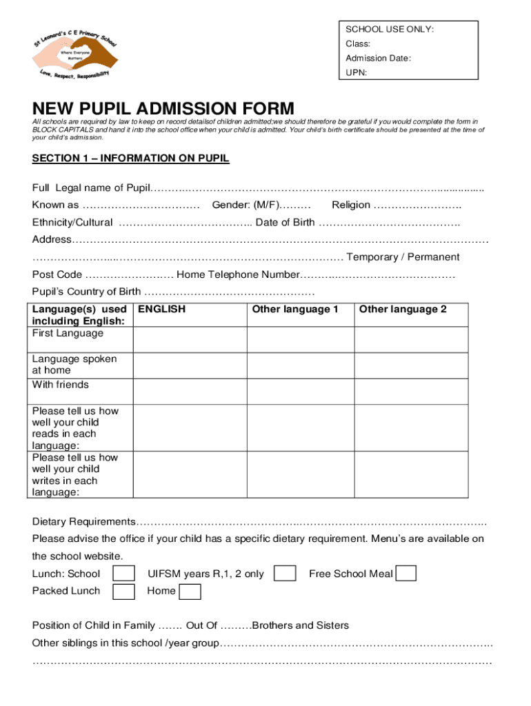 Get the free NEW PUPIL ADMISSION FORM - St Leonard's C.E. Primary School - st-leonards oxon sch