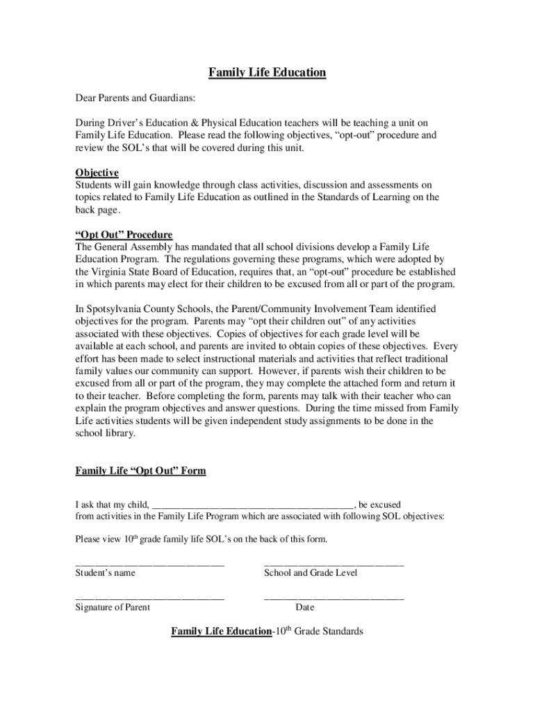 Get the free Family Life Education - Spotsylvania County Public Schools