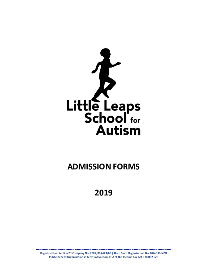ADMISSION FORMS 2019Registered as: Section 21 Company No. 2007/007473/08 Nonprofit Organization No. 076636NPO Public Benefit Organization in terms of Section 18 A of the Income Tax Act 930 032 628Little