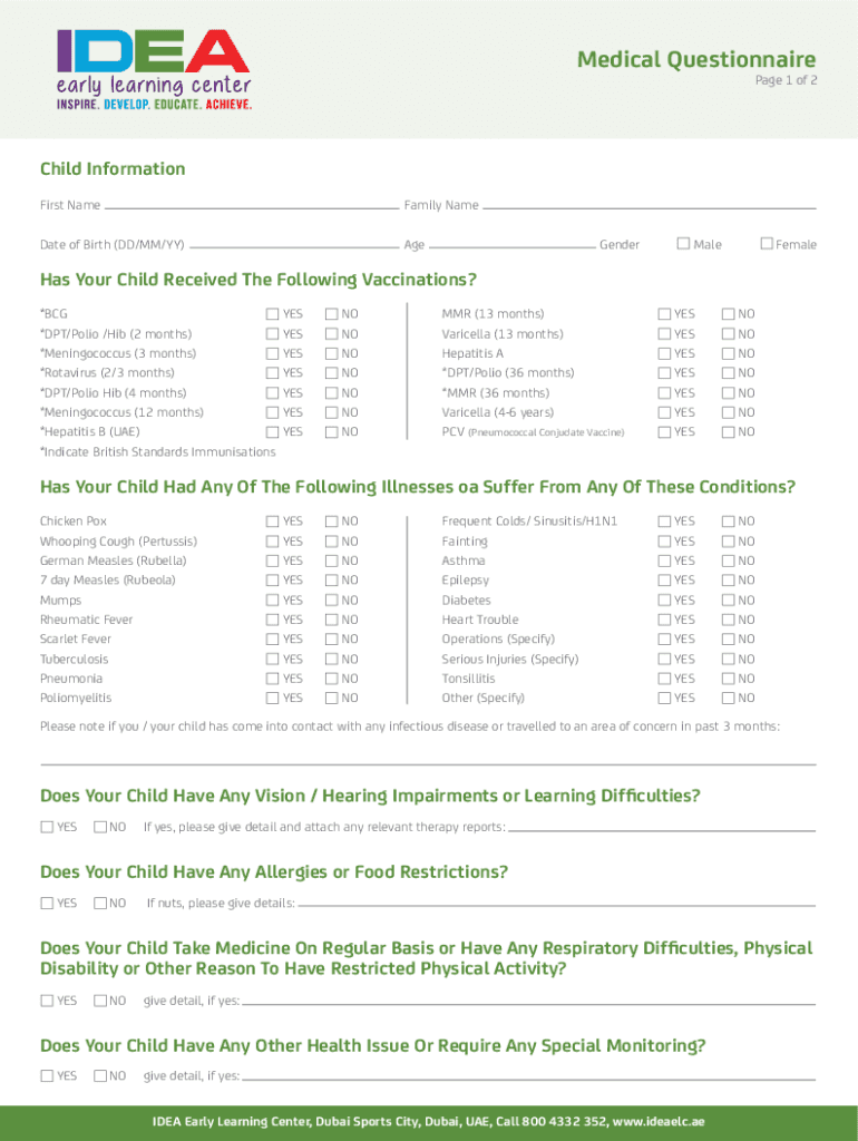 Medical Questionnaire Page 1 of 2Child Information
