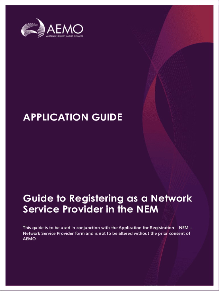 APPLICATION Guidebook to Registering as a Network Service Provider in the NEM This guide is to be used in conjunction with the Application for Registration NEM Network Service Provider form and is