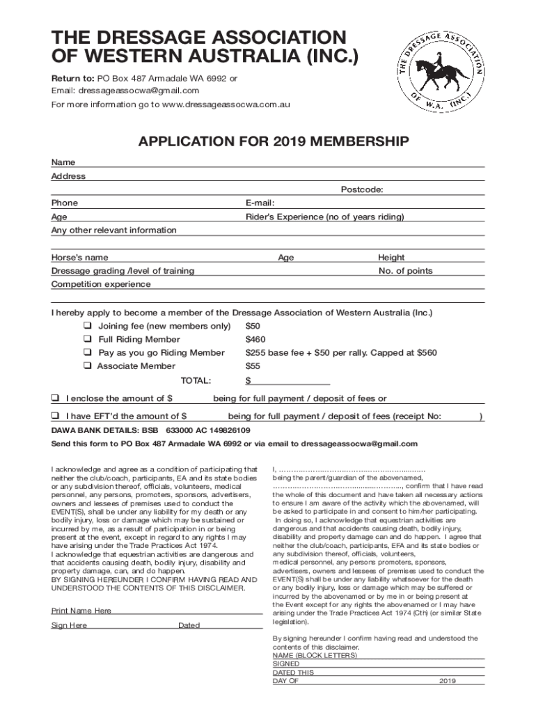 For more information go to www.dressageassocwa.com.auAPPLICATION FOR 2019