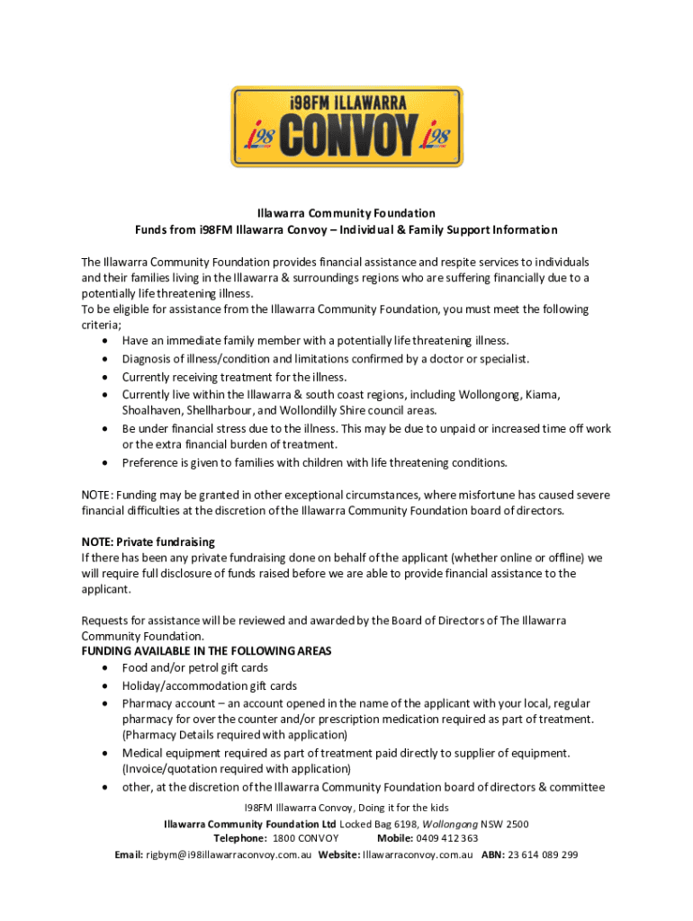 Illawarra Community Foundation Funds from i98FM Illawarra Convoy Individual & Family Support Information The Illawarra Community Foundation provides financial assistance and respite services to individuals