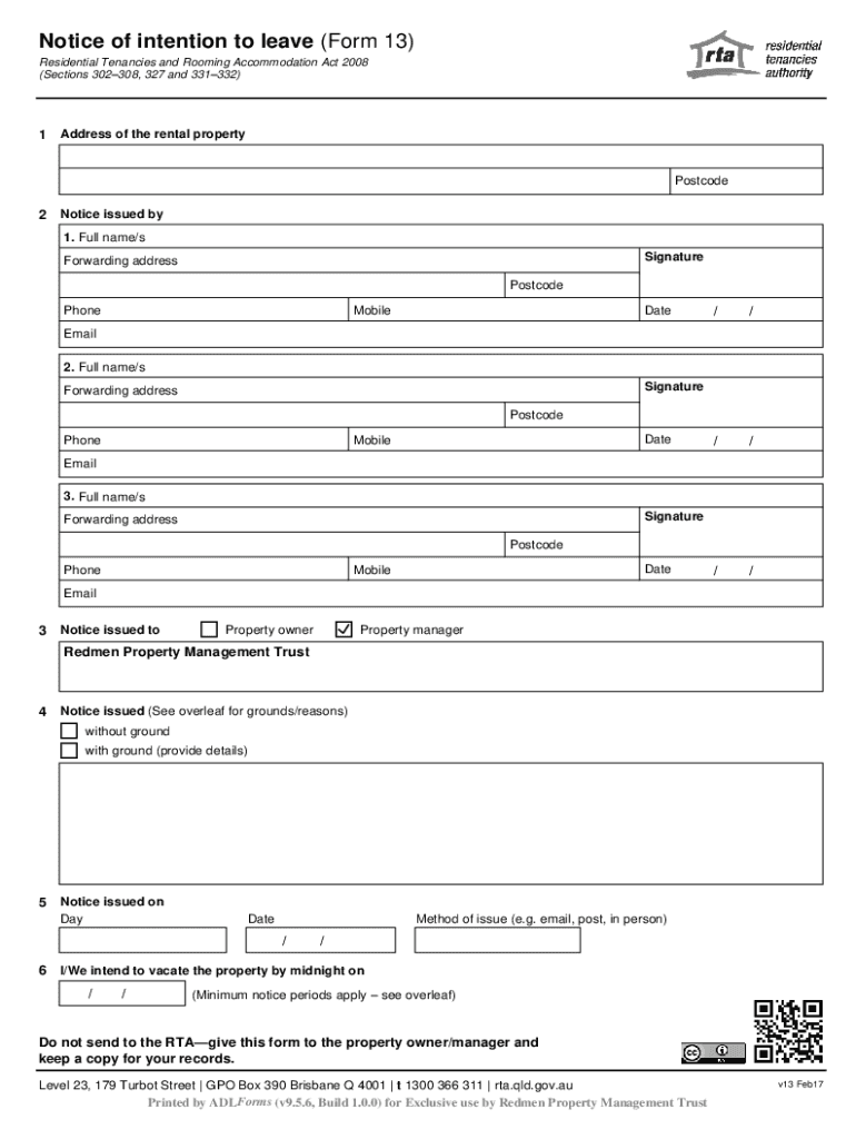 Get the free Notice of intention to leave (Form 13) - Ken Guy Buderim