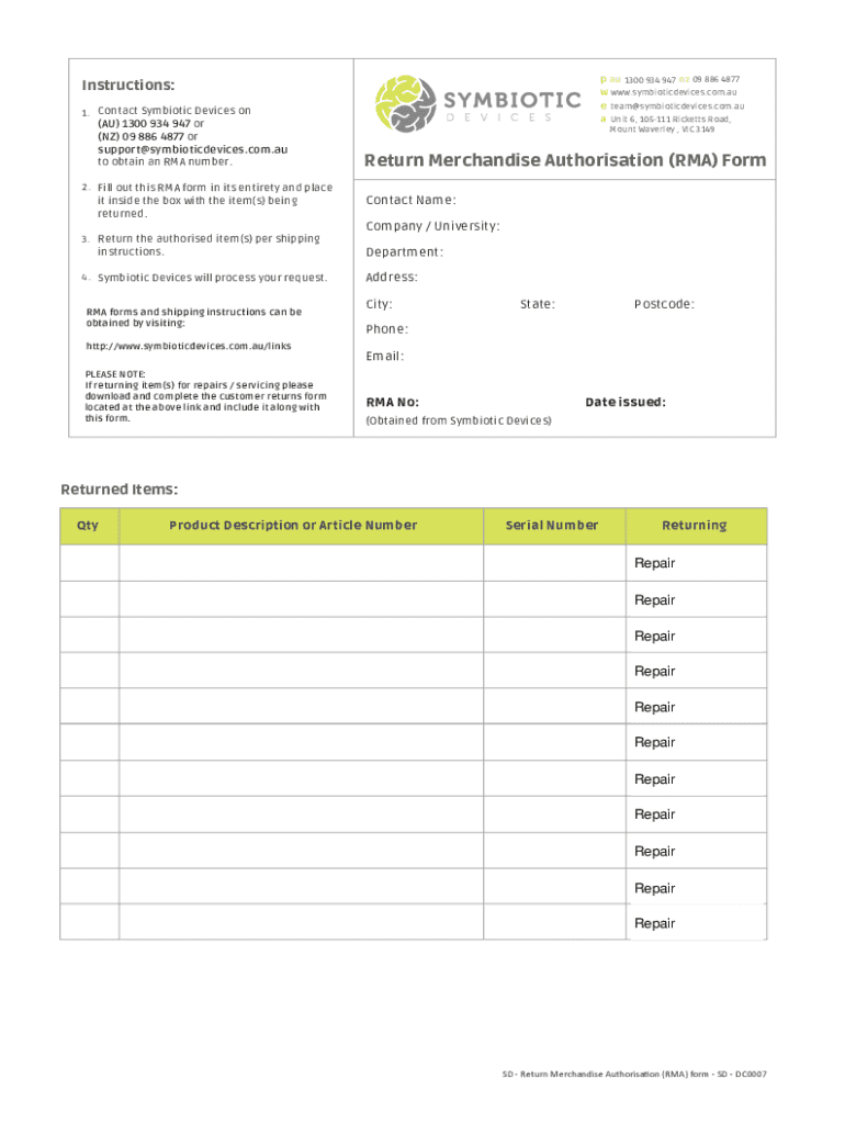 Get the free supportsymbioticdevices.com.au Return Merchandise ...
