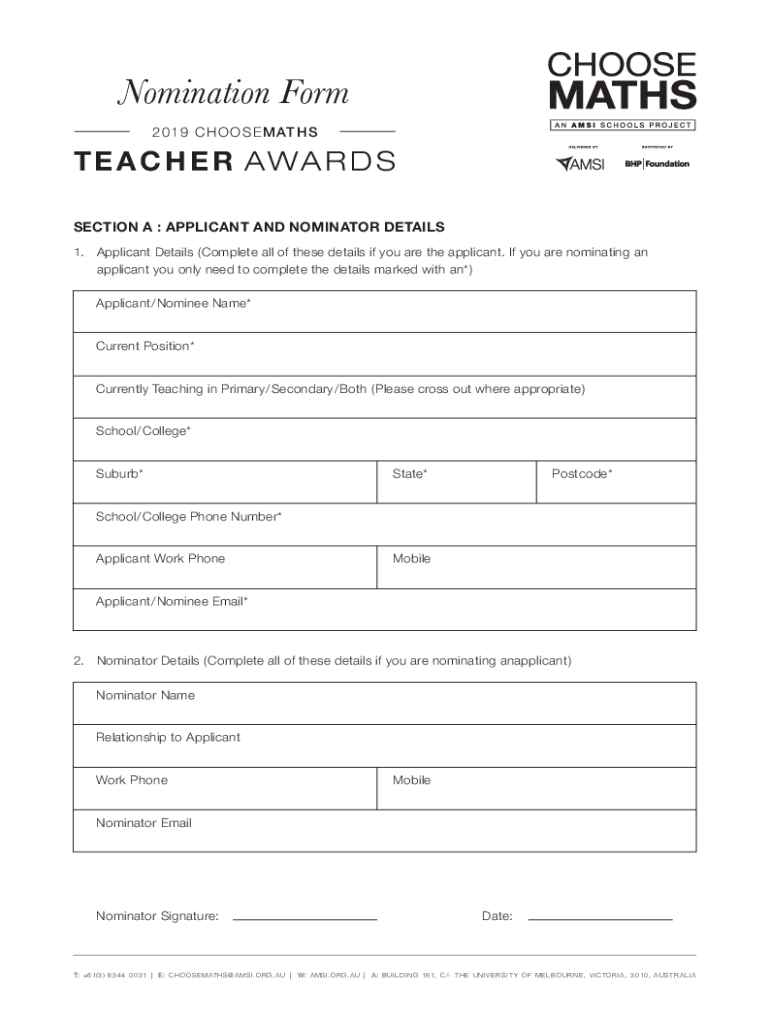 Nomination Form - Choosemaths is not the form you're looking for?Search for another form here.