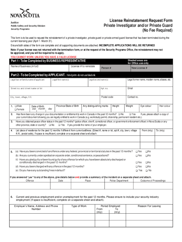 Get the free Nova Scotia Canada License Reinstatement Request Form ...