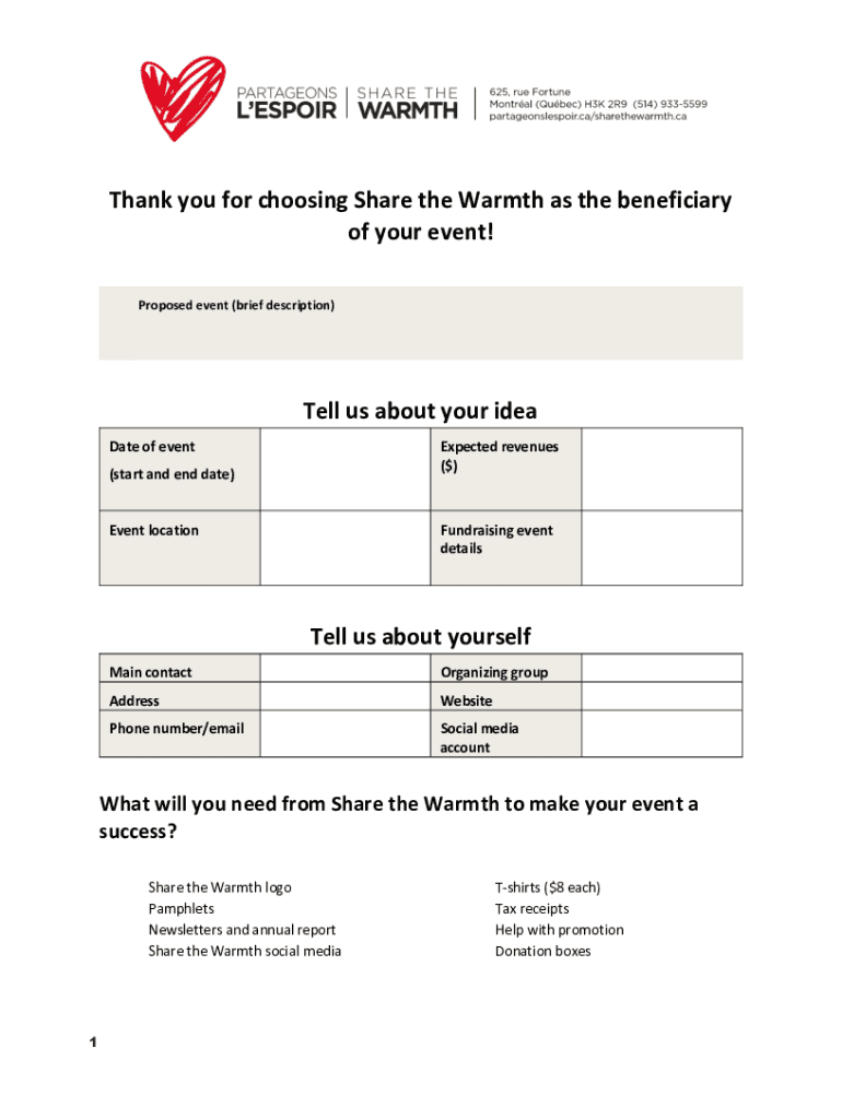 Thank you for choosing Share the Warmth as the beneficiary