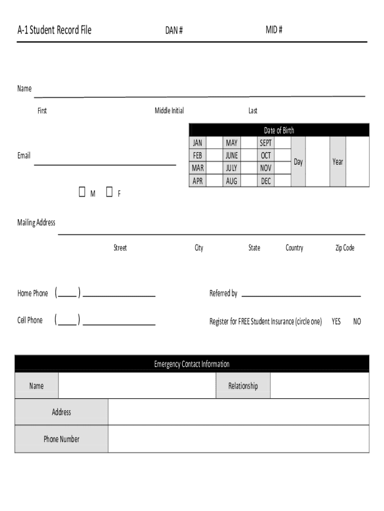Get the free PDF Student Information Sheet Last Name First NameMiddle I ...
