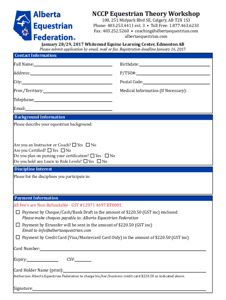 Fill out your nccp equestrian formory workshop online with pdfFiller!
