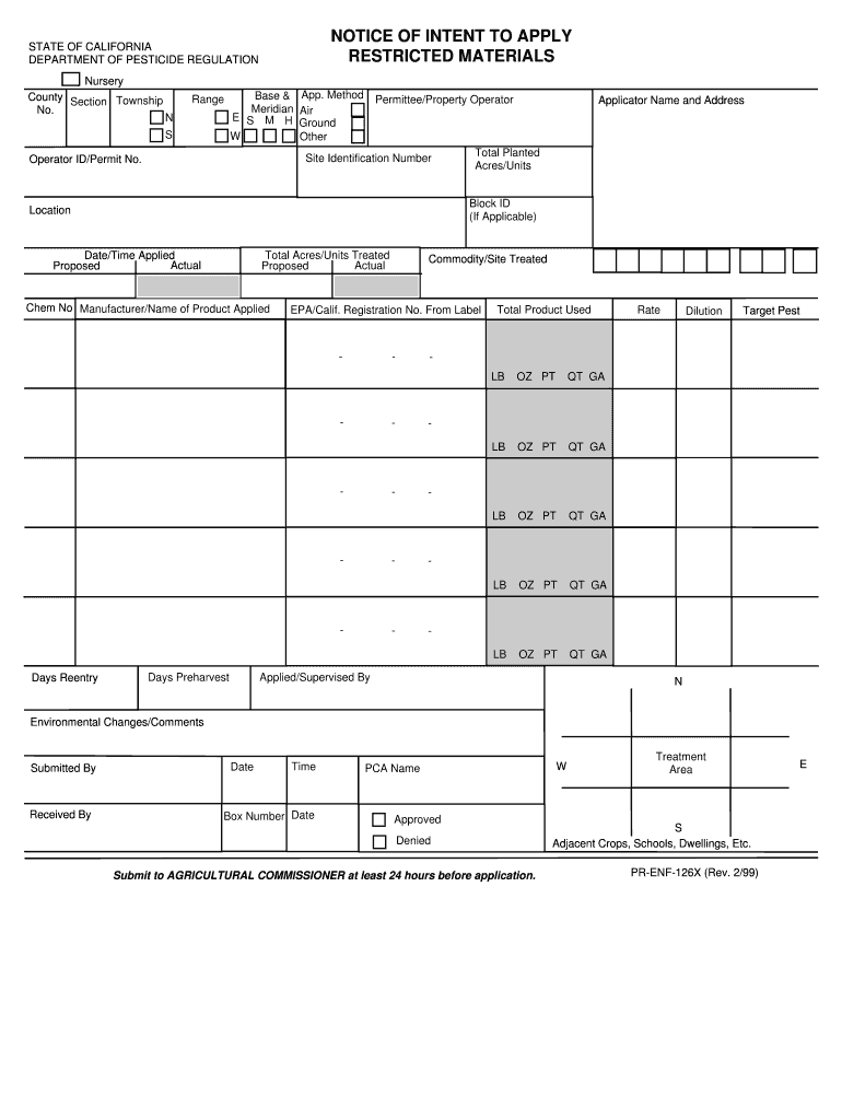 Get the free Notice of intent to bapplyb restricted materials - County of San Diego - countyofsb