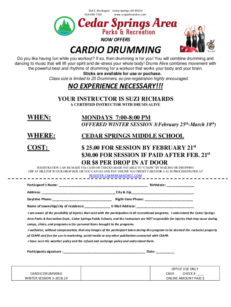 www.csaparksandrec.comNOW OFFERSCARDIO DRUMMING
