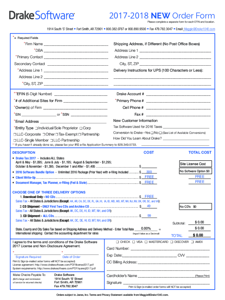 Get the free 2016-2017 Pay-Per-Return NEW Order Form - Drake Software Sales