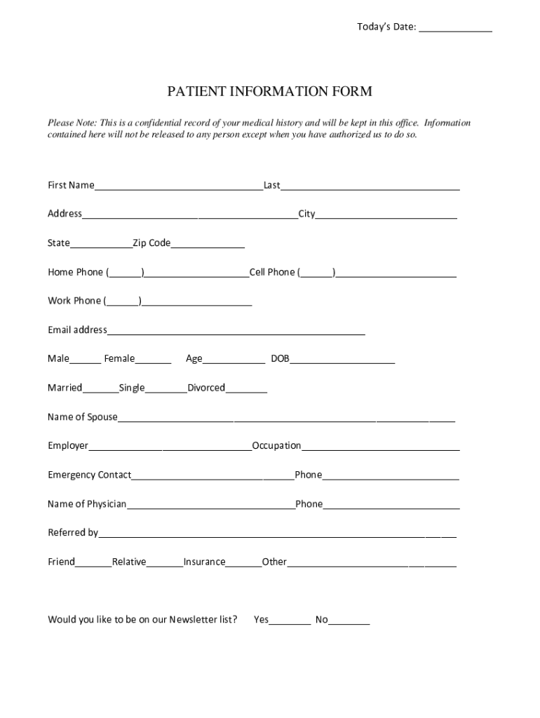 Patient Information Form is not the form you're looking for?Search for another form here.