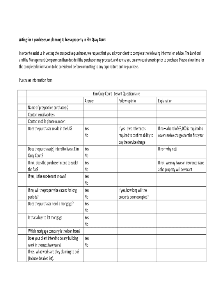 In order to assist us in vetting the prospective purchaser, we request that you ask your client to complete the following information
