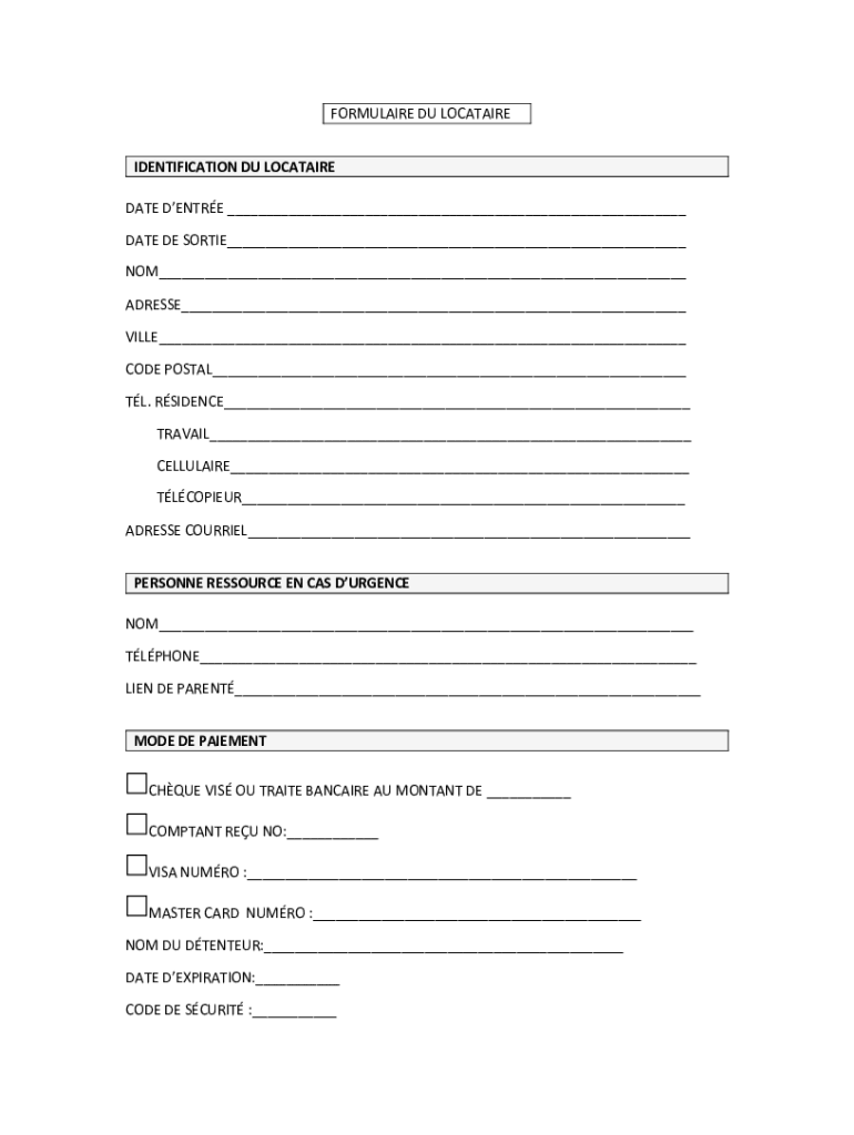 FORMULA IRE DU LOCATION IDENTIFICATION DU LOCATION DATE DENTURE DATE DE SORTIE NOT ADDRESS VILLA CODE POSTAL TL. RESIDENCE TRAVAIL CELLULAR COPIER ADDRESS COURIER PERSONNEL RESOURCE EN CAS URGENCY