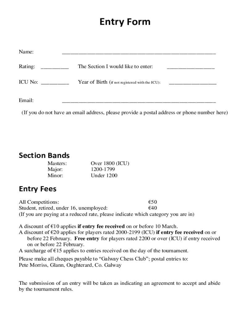 Entry Form Name: Rating: ICU No: Email:The Section I would like to enter: Year of Birth (if not registered with the ICU): (If you do not have an email address, please provide a postal address or phone