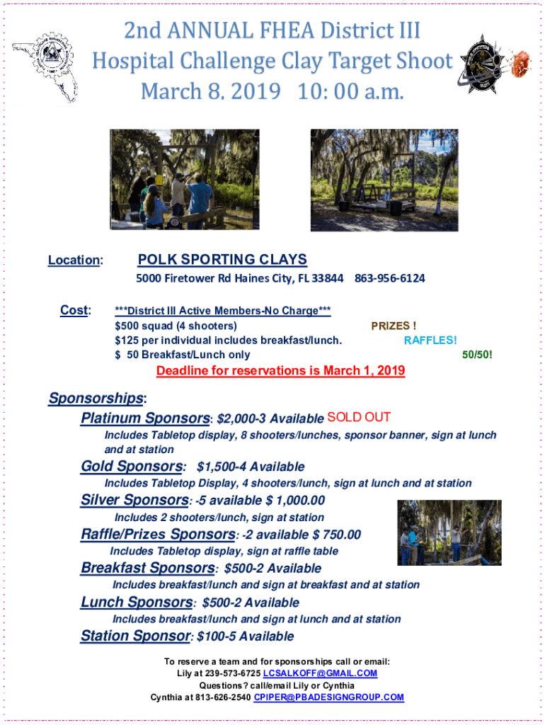 March 8, 2019 10: 00 a.m. Location: POLK SPORTING CLAYS