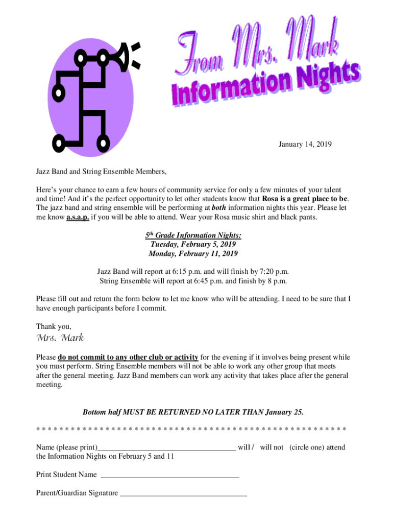 January 14, 2019Jazz Band and String Ensemble Members,