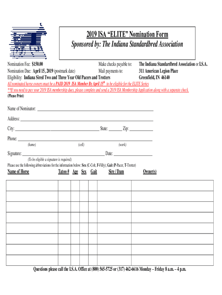2019 ISA ELITE Nomination Form