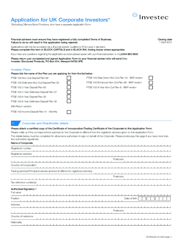 *Excluding Offshore Bond Providers, who have a separate Application Form. Closing date