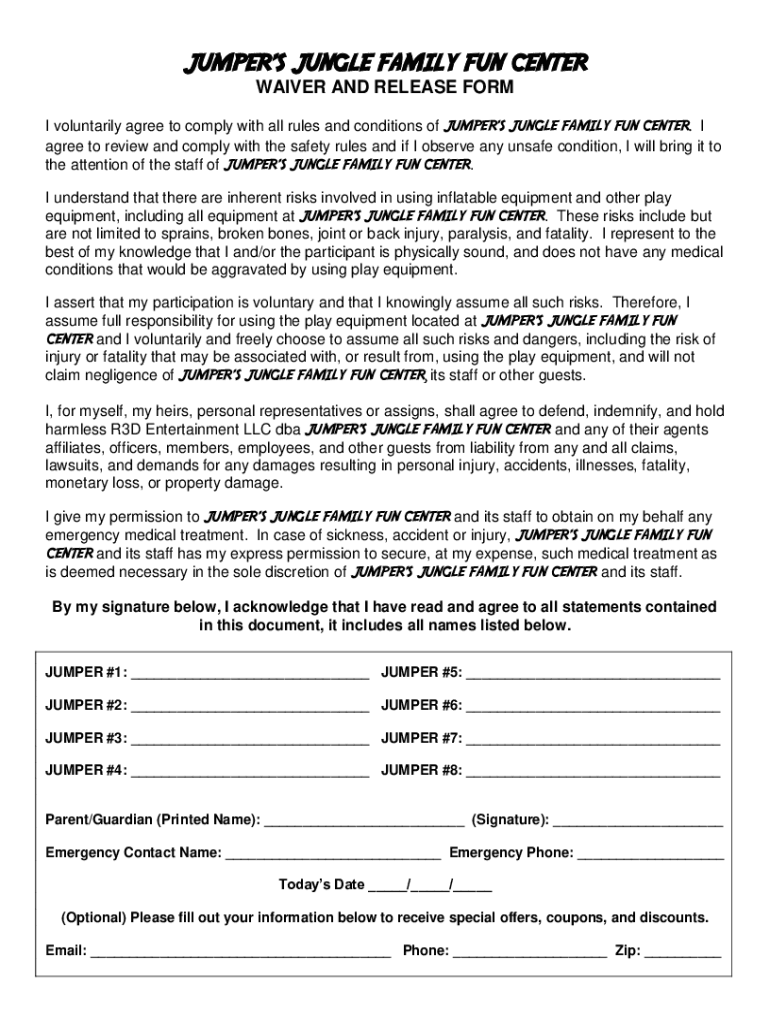Get the free Online Yearly Waiver and Release Form - Jumper's Jungle ...